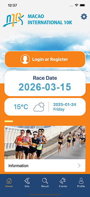 Running is one of the most popular sports in the world, and the Macao SAR Government has actively advocated local sports development throughout the years to create the synergy of sport tourism. The Macao International 10K was inaugurated in 2021 with two race events: 10K and Fun Run. In order to provide interested parties with convenient access to the latest competition information, a mobile app for the Macao International 10K has been launched. After downloading the app, users could browse for competition information, route map and their results on the race day, as well as sharing their results to social media.