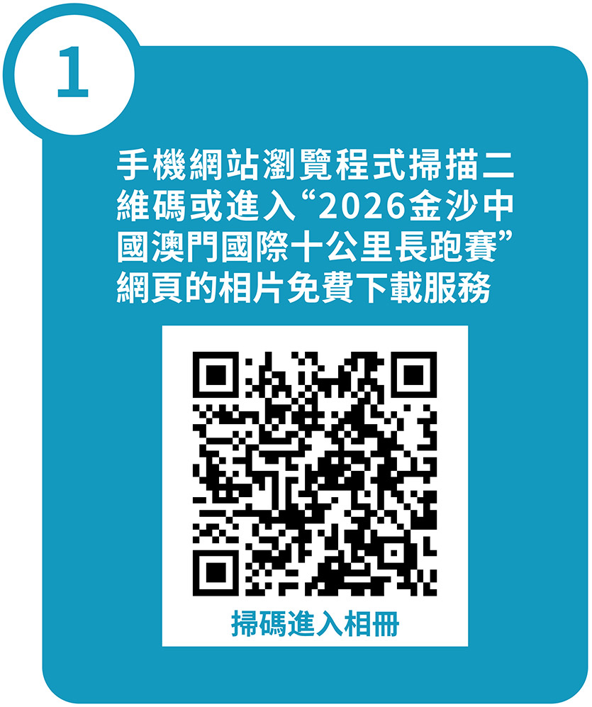 手機網站瀏覽程式掃描二維碼或進入"2026金沙中國澳門國際十公里長跑賽"網頁的相片免費下載服務
